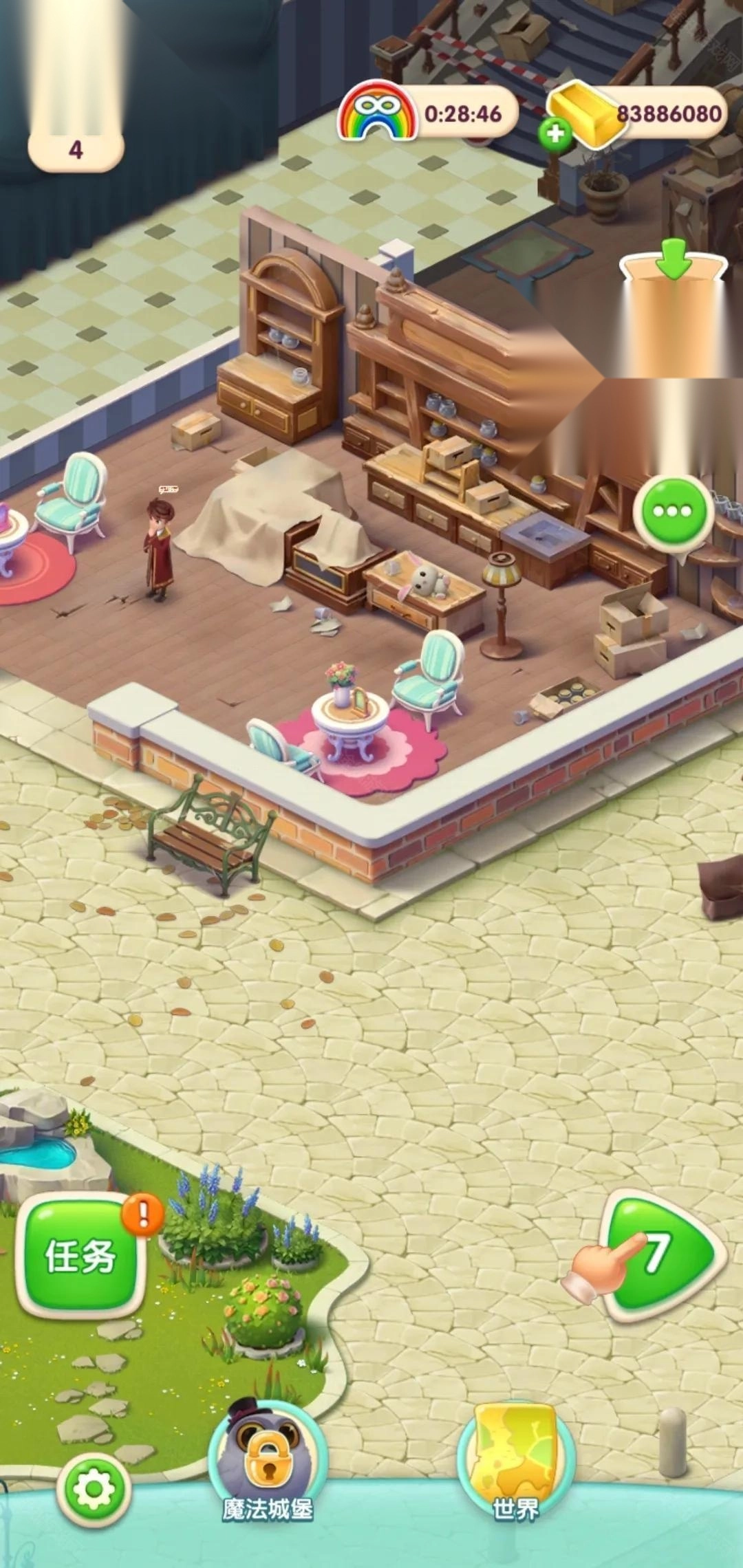 5、接着回到主界面,点击左下角的任务按钮,用星星来翻新庄园。