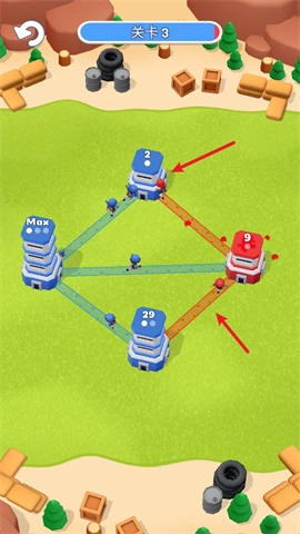 当两座塔楼之间建立起连接,对应的道路便会随之生成,紧接着会有士兵持续不断地出现,尝试攻占塔楼,而灰色的塔楼则代表其尚未被占领。