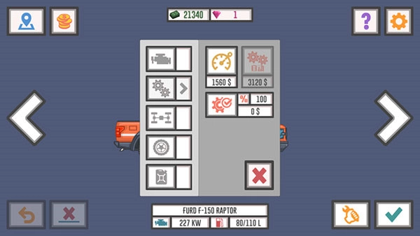 这里可以改造货车的引擎、轮胎、耗油量等。