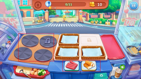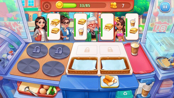 在这个互动场景里,参与者要依据每位顾客的饮食偏好,制作出符合其心意的煎饼。需要留意的是,界面一侧的绿色条状标识代表着顾客的耐心程度,一旦该标识转变为红色,意味着顾客的情绪已处于不满状态。
