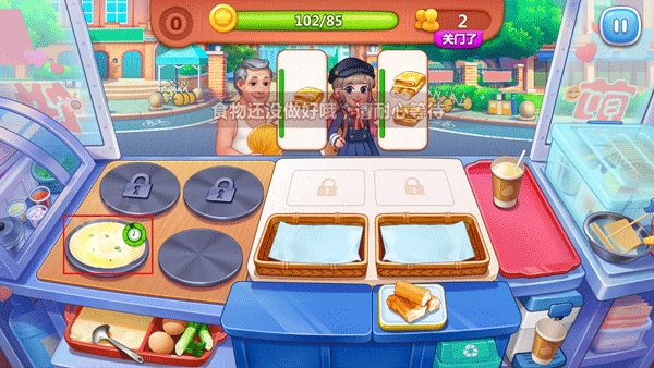 制作煎饼过程中,界面右上角的绿色标识圆圈亮起时,意味着煎饼即将熟透;一旦它转为红色,就说明再加热可能会烤焦。你需要在圆圈刚变红的瞬间,把煎饼递给对应的顾客。每天只要积累到目标金币数额,就能结束当天的营业啦!