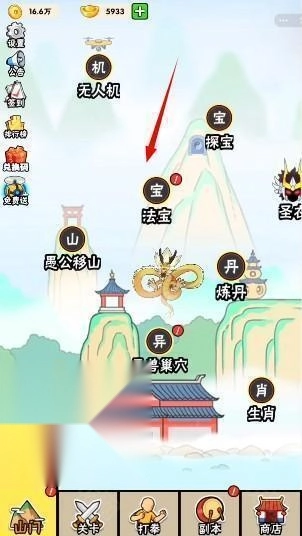 1、第一步进入游戏后,点击下方的“山门”