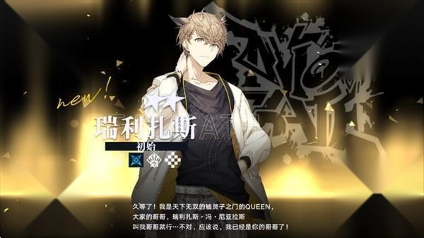 2、瑞利扎斯,初始 久等啦!我是举世无双的轴灵子之门的QUEEN,也是大家的哥哥——瑞利扎斯・冯・尼亚拉斯,叫我哥哥就好… 不对,准确说,我已经是你的哥哥了。