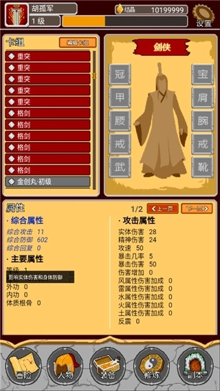 3、【沧浪长衫】衣服,剑气变化时同比例回真气。主真气防御,跟剑气联动,搭配的好能全程保持真气全满。