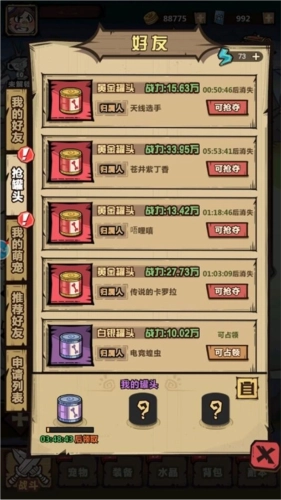 6、添加好友后就能参与抢罐头的玩法了,就像下面这张图展示的,我们可以选择战力较低的好友来进行抢夺。