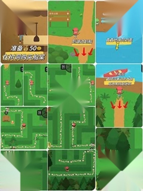 2、走迷宫:50去湖边划船去对面走迷宫,在迷宫的尽头。
