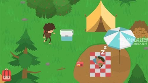 2、获取方法:钓一条鱼,然后交给右上角的贪睡熊,让其帮我们驱赶蜜蜂,然后就能在树下找到藏宝图。