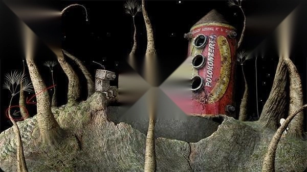 2、这个场景的洋葱头之后会变成我们飞船的一部分,我们先去使用小喇叭对洋葱头使用,主角会产生用洋葱头做一个宇宙飞船的想法,想法结束后,还不能做其他的内容,先沿着红线区域前往下一个场景。
