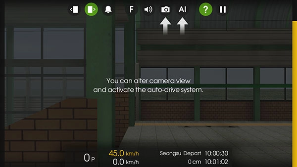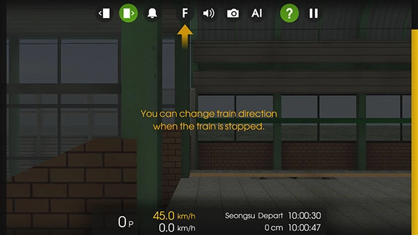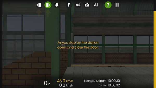- 玩家只需把右侧的黄色减速条拉到0档,左侧加速条调整至1到5档任意位置,列车即可启动;当列车抵达目的地后,必须停靠在标准线范围内,车门才能打开以供乘客上下车,记得留意不要驶过站台哦!