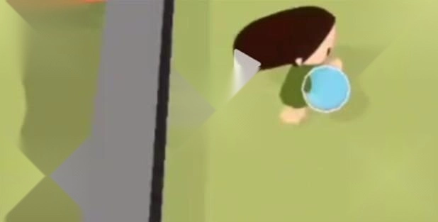 3、接下来我们从右边,卡bug硬把小水桶拿到手中。