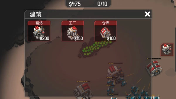 :游戏玩法非常简单,打造自己的基地与敌人作战,建立自己的机甲军队来摧毁敌人,从而展现玩家的最佳体验。机甲武器