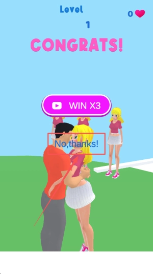 领取胜利奖励:当界面出现“CONGRATS! WIN X3”的提示时,点击领取三倍奖励即可进入下一关。