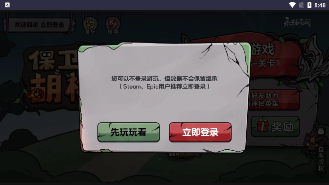 进入后您可以选择保卫胡桃游戏进行登录