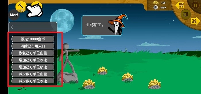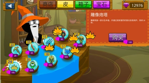 道具介绍矿工淘金热:矿工采矿速度加倍,持续30s。剑士暴怒:剑士攻击速度翻倍,持续20s。弓箭手剑雨:发出一连串弓箭,持续5s。矛士狂怒:矛士投掷长毛,伤害力翻倍,持续20s。雕像炮塔:雕像恢复一部分生命值,并通过发射强烈的激光自我保护,持续20s。