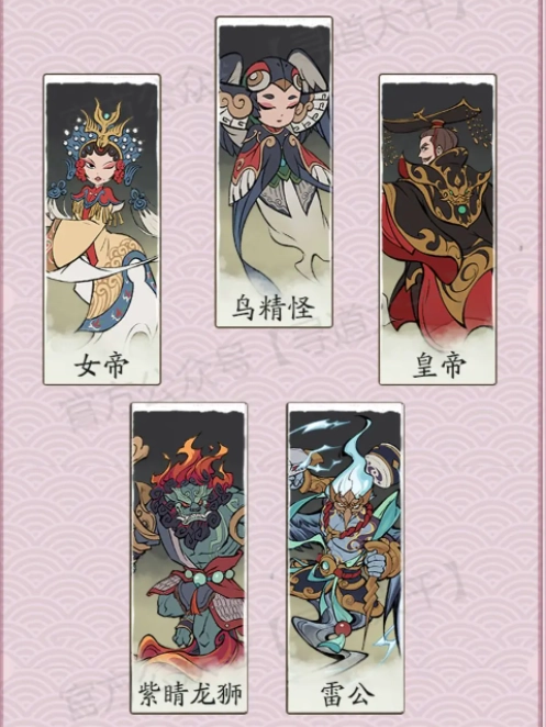 组合:鸟精怪、女帝、紫睛龙狮、雷公、皇帝。