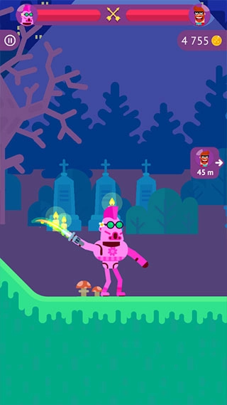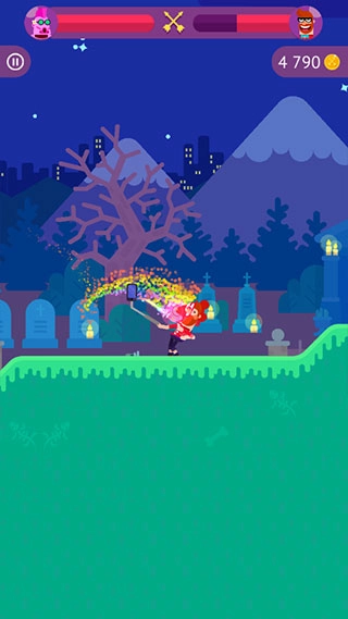 这款游戏的玩法相当简单:屏幕里有两个相距数米的对战角色,玩家得调整好发射的角度与力度,让角色手中的武器精准命中对手,之后再应对对方的反击,这样循环下去,直到其中一方先倒下。要是有角色被射中,就会有大量鲜血喷涌而出,紧接着被射中的部位还会露出鲜红的血肉和逼真的白骨,视觉冲击力特别强,胆子小的玩家实在受不了。