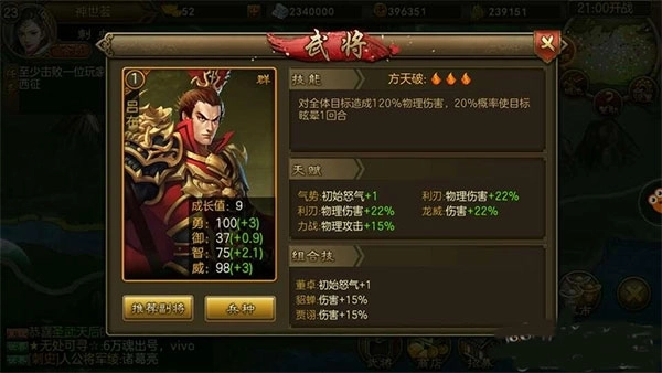 良将若要充分施展其威力,还需提升他们的等级与星级,同时为他们配备精良的武器和马匹。