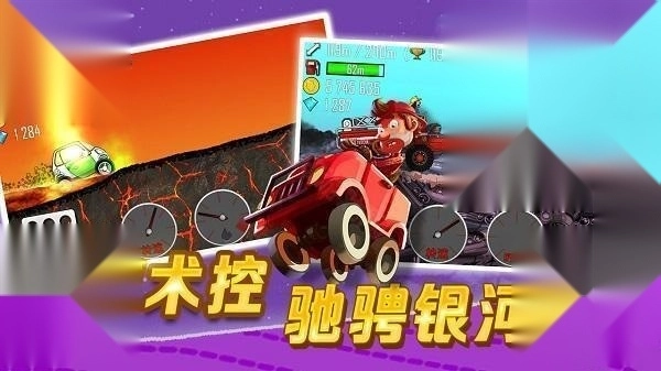 1、必须驾驶汽车在各种斜坡上行驶,游戏画面还是非常刺激和卡通的。