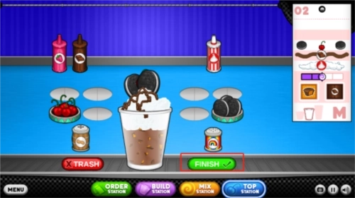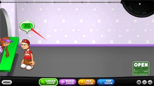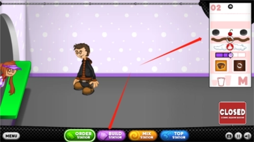 6、记录下顾客的要求,然后点击buildstation、mixstation和topstation这几个选项,开始制作冰淇淋。