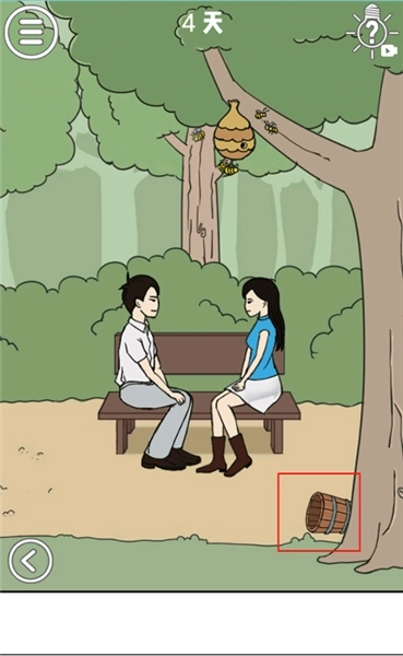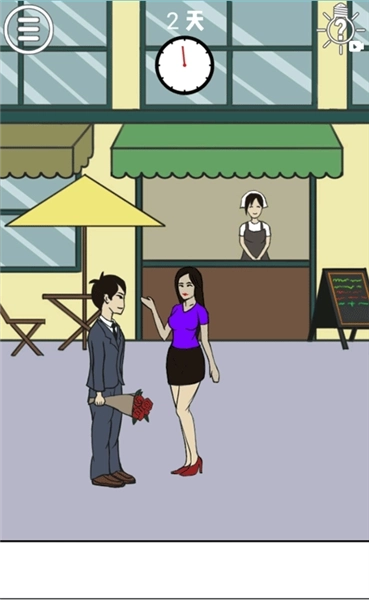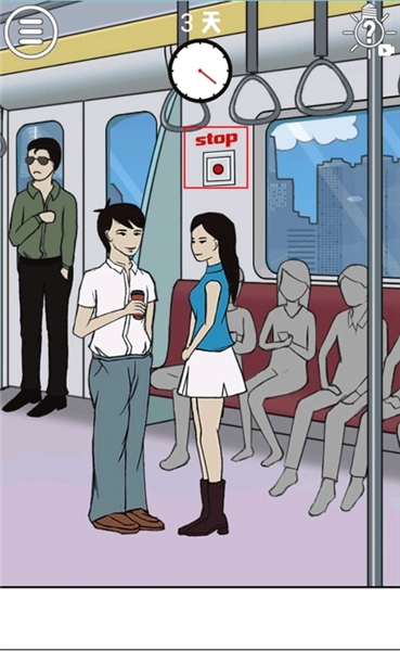 这一关的难度很低,大家看到地铁门前站着的那个男子了吗?他手上端着一杯咖啡,先点击把他的咖啡拿过来,再把这杯咖啡递给穿白色上衣的男子,之后点击红色“stop”标识下方的按钮进行紧急停车,就能拆散这一关卡里的情侣啦!