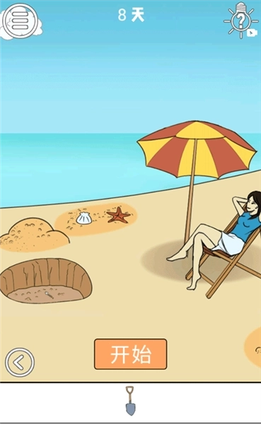 首先,大家先用铲子在那堆沙子里挖个坑,坑挖好后把太阳伞收起来,接着用铲子把沙子铺到太阳伞上,之后再打开太阳伞,这样旁边的那位女子就能收到一份大大的惊喜啦,嘿嘿嘿。