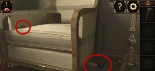 1、密室逃脱10第2关的攻略,第一步是获取椅子旁的手杖。
