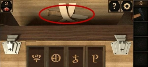 5、按照符号提示输入对应的图案,打开正上方最左侧的箱子,取出小刀。