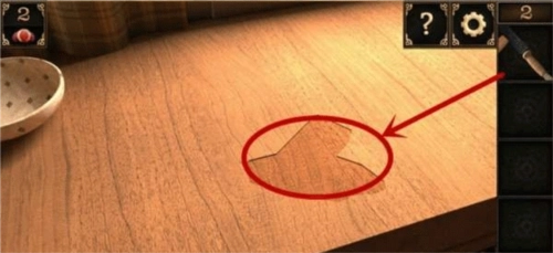 6、把小刀和锤子组合起来,用组合好的工具撬开左侧桌子上那块破损的木板,就能拿到一把钥匙。