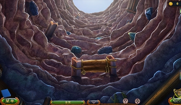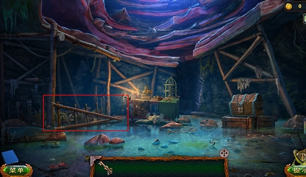 10、进入石洞并到达第二个场景后,先在正中间的位置找到一根铁棒,接着点击右侧的地面。