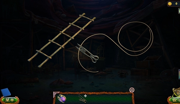 6、从箱子里取出球面石和剪刀。随后进行拼装以打开刚才的梯子,把上面散落的木材安装到梯子上,最后解开绳子,用剪刀将其剪开。