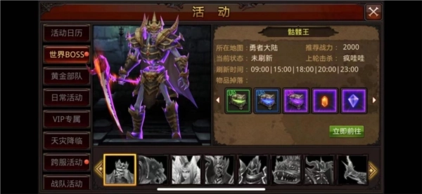 1.世界BOSS。每天9点10点11点。各地图都会定时出现BOSS,如果你战力强大,可以前往高级别的地图,小号很难抢你,如果你战力一般,就去大陆、仙踪林、冰风谷,就要看你的卡秒技术了。击杀怪物,获得礼物、各类紫色装备、进化宝石等!