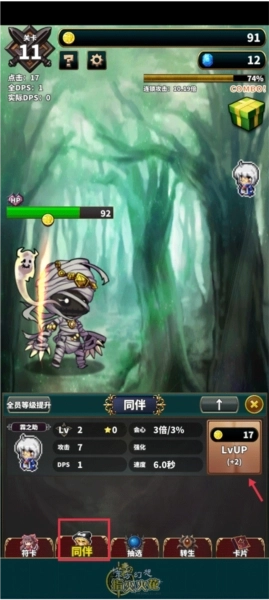 3、同理,若想提升同伴的攻击力与强化能力,同样需通过消耗金币来提高其等级;而要获取新同伴,则需在“抽选”功能中使用10个蓝色宝石进行抽取。