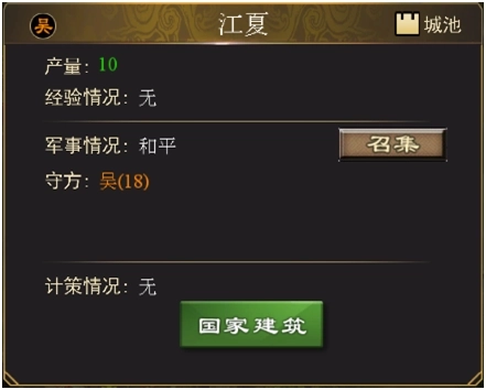⑵国家建筑建成后,若该城池被另外两国攻占,国家建筑便会消失。