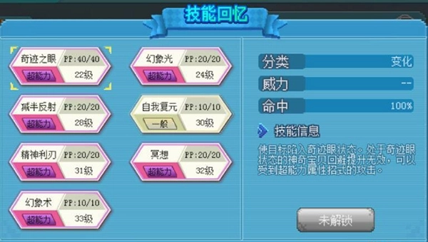 胡地的技能全是超能系的,它能自己学会自我恢复这个技能。不过碰到恶系宝可梦的时候就只能选择换人了,不过后面可以通过技能机来弥补这个缺陷,像能量球或者影子球这类技能就能派上用场。