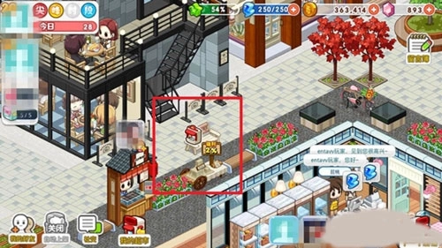 5、注意:游戏里带有红框图案标识的区域即为空闲摊位,点击该位置即可申请开店,后续只需等待好友确认接受即可完成流程。