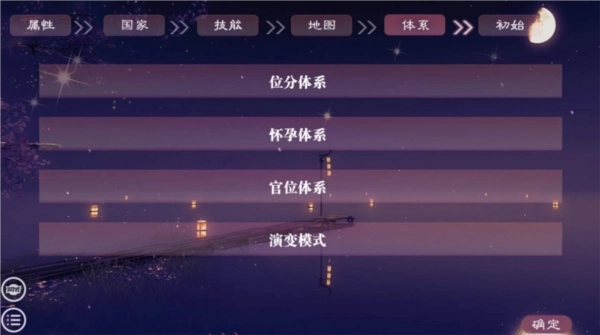 9)体系:自由模式开局时,玩家可自主选择设定为富庶强盛的国家,或是处于危亡困境、积弊已久的国度;后宫位分体系支持自定义:玩家能自行设定位分名称、对应月俸、各层级人数上限以及势力权重,还可将这些设置保存为模板,只需一次填写完成,后续所有存档都能直接套用该模板。