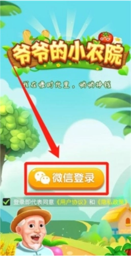 1、在本站并安装爷爷的小农院游戏,点击微信登录
