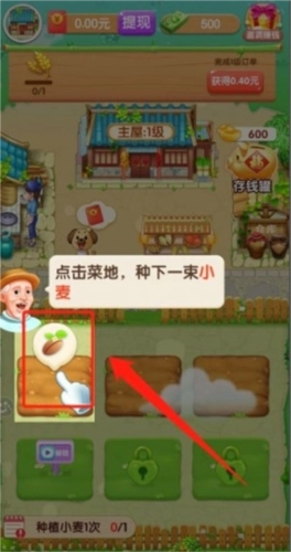 2、进入游戏后首先开始新手教程电机菜地种下一束小麦