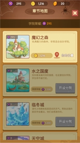 还有完成更多任务,这样才能获得更多的荣耀,这样才能尽早的进入第二地图。最后,作为校长光有现在的教学还不够,后期你可以通过建造更多教学,聘请更多老师,学习并掌握更多魔法类型,增添装饰,让魔法学院在你手里闻名世界吧!