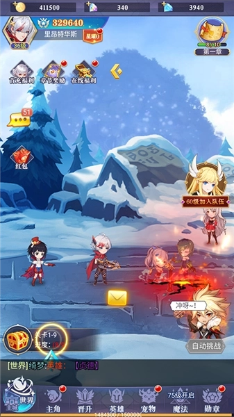 3、一键开启挂机模式,支持分身同步作战,组队还能享受经验倍数加成buff,助力玩家以超强实力轻松完成关卡推图与扫荡。