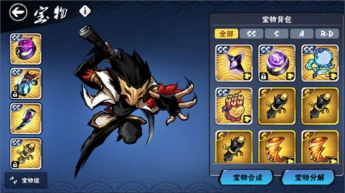 1、玩《忍者必须死3》时,宝物可千万别随意合成,我之前就因为乱合吃过亏。关于几个角色的宝物搭配,我的个人建议是这样的: