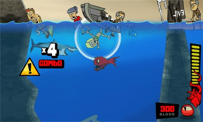 游戏包含剧情模式、生存模式以及联机对战模式,玩家将分别扮演人类和食人鱼展开对抗。