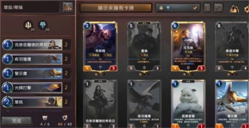 随机抽卡的体验或许很畅快,但往往伴随着高额的氪金成本,一旦抽不到心仪的卡牌,还可能让玩家愤而弃游。《符文之地传说》在保留随机玩法乐趣的同时,降低了这种负面情况对游戏体验的影响。玩家在游戏进程中会随机解锁卡牌,也可以通过充值兑换游戏内的硬币(Coin,游戏内两种货币之一),再用硬币购买不羁卡牌(wildcards)。不羁卡牌有不同稀有度等级,包括普通(Common)、稀有(Rare)、史诗(Epic)和英雄(Champion),其价格随稀有度提升而增加。玩家消耗对应数量的不羁卡牌,就能直接制作出相同稀有度的卡牌,从而实现对目标卡牌的定向获取。