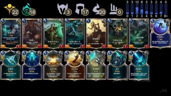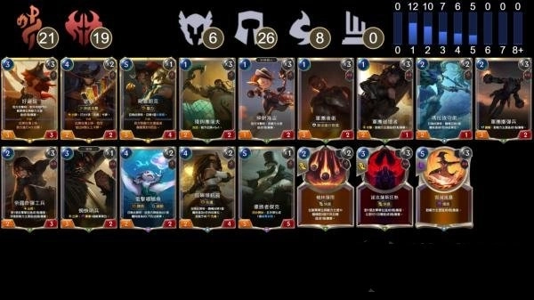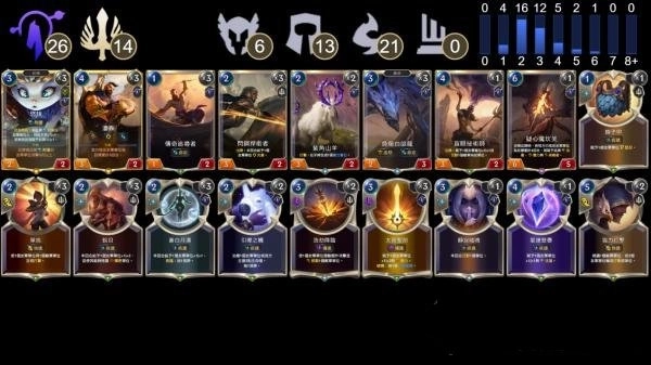 这套卡组的短板在于攻击力不足,这或许和艾欧尼亚的背景设定有关,比较倚重脆皮劫来打输出。但塞翁失马,像双重戒律这类法术牌能显著提升卡牌属性,前期一般能压制住敌方卡牌。