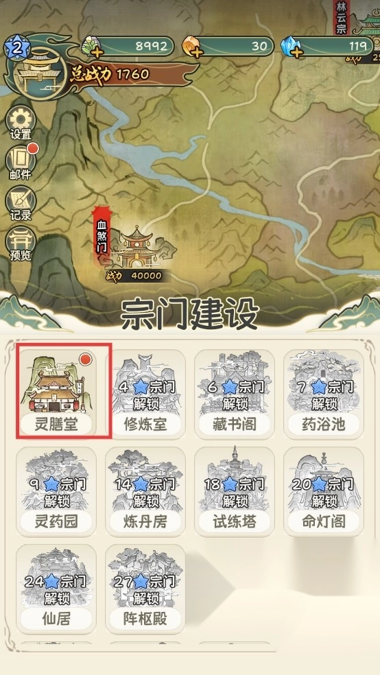 在宗门建设时,要优先对【灵膳堂】进行升级,通过提升宗门建筑的等级来解锁更多功能。