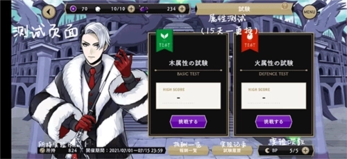 试炼页面包含木、水、火、无属性和全属性这5种属性类型。每15天会更换一次卡片,卡片附带两种属性的魔法,通过升级可以提升其攻击力。