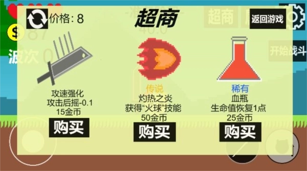 1.能够购买多种多样的技能,每个等级都会随机刷新可购买的道具与能力。