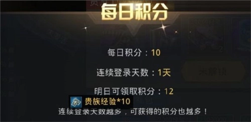 当然啦,要是有小伙伴想把钻石留着干别的用,也完全不用慌!咱们还能通过每天签到的方式来拿贵族积分呢,而且连续签到的天数越多,每天能得到的贵族积分就会越多哦~