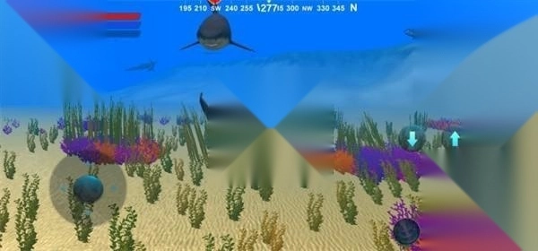 2、游戏采用真实的水上物理引擎,搭配酷炫的鲨鱼动作和海洋生物动画。