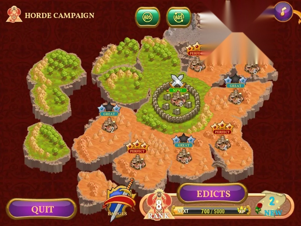 4、带领自己的英雄和士兵参加各种热血关卡,展开一场又一场史诗般战役。